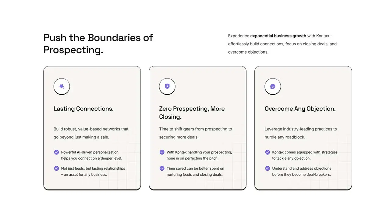 Kontax AI, a smart platform built to power LinkedIn outbound prospecting, market research, fundraising, and casual networking, needed a fresh digital presence. Their existing site lacked the performance, responsiveness, and visual appeal expected from a cutting-edge AI brand.